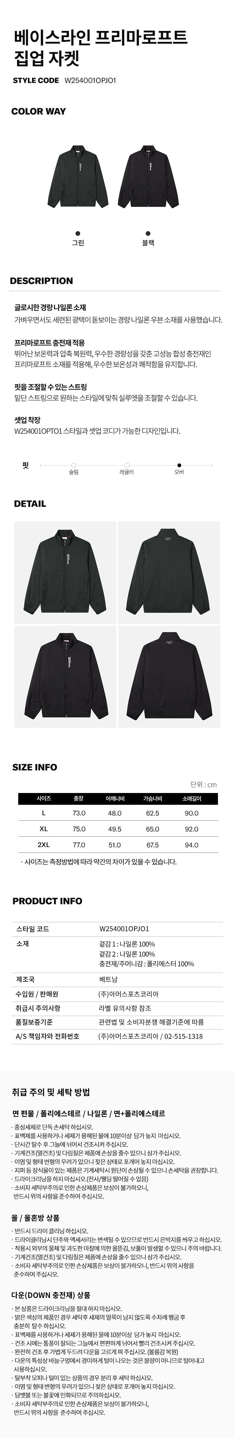 베이스라인 프리마로프트 집업 자켓