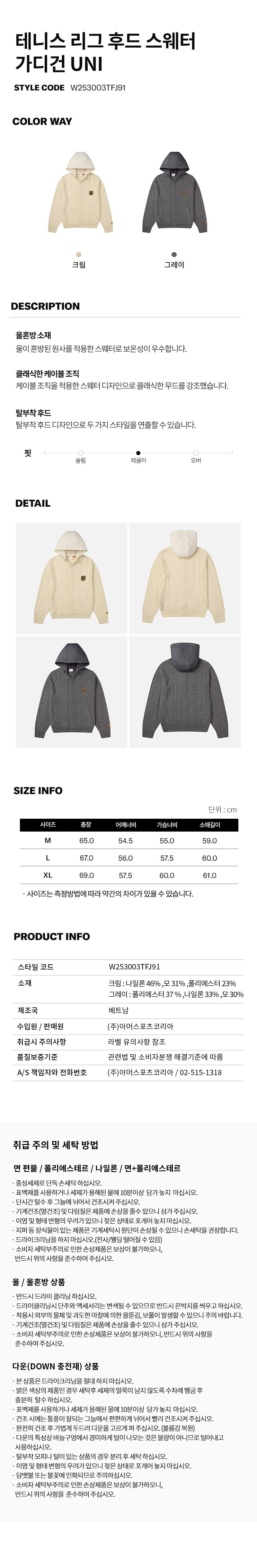 테니스 리그 후드 스웨터 가디건 UNI