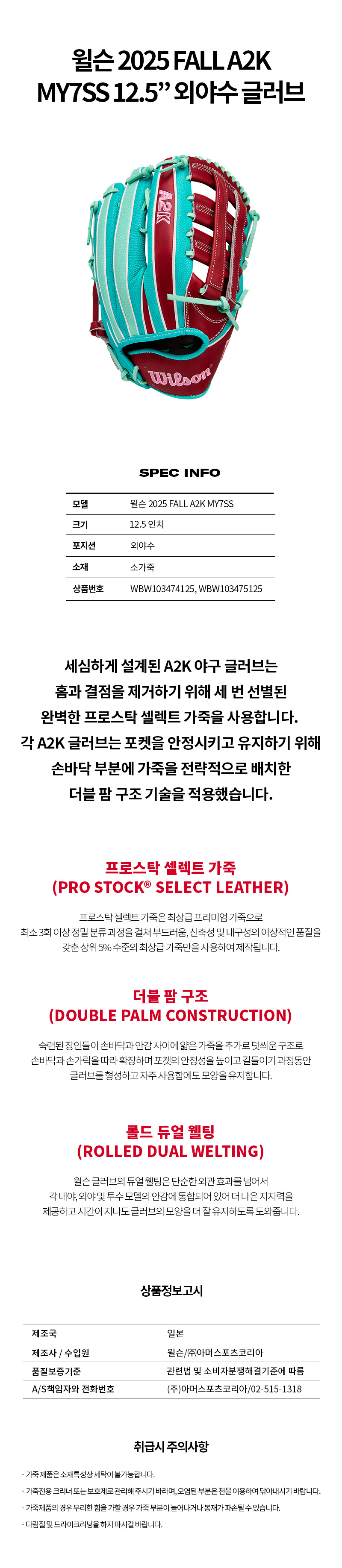 윌슨 2025 FALL A2K MY7SS 12.5” 외야수 글러브