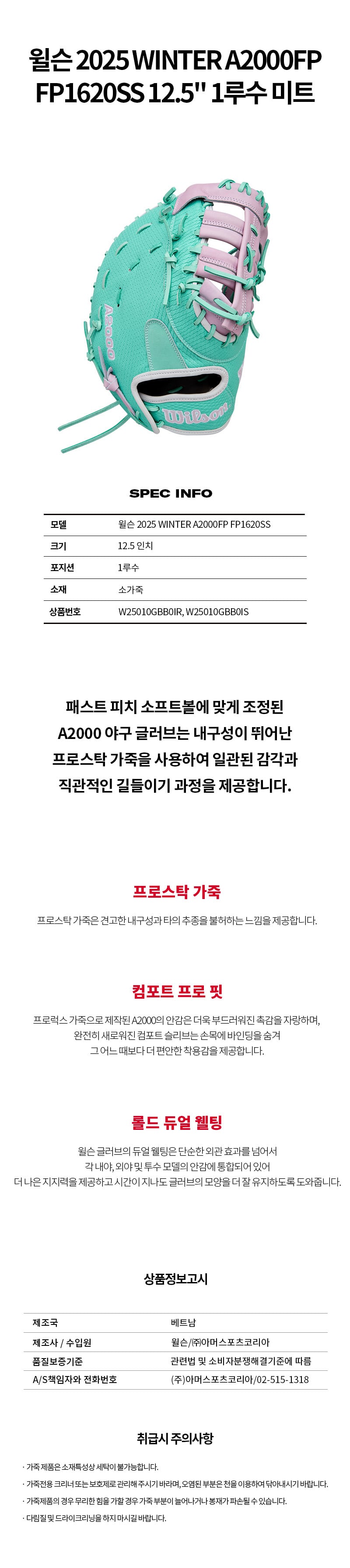 윌슨 2025 WINTER A2000FP FP1620SS 12.5" 1루수 미트