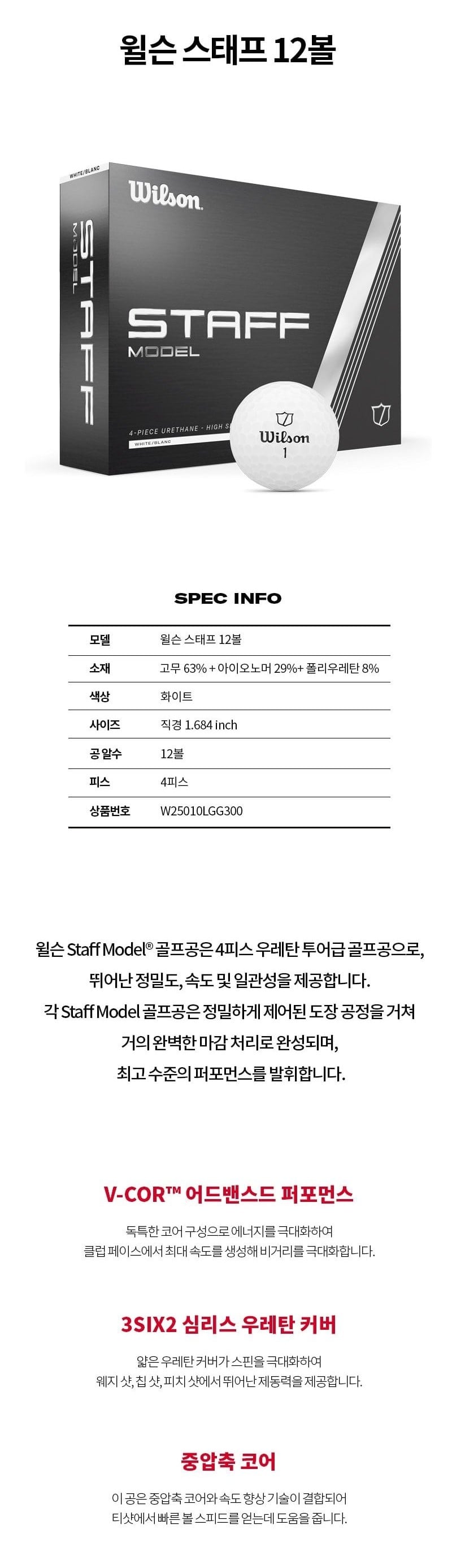 윌슨 스태프 12볼은 투어급 4피스 우레탄 골프공으로, V-COR™ 코어와 3SIX2 심리스 커버를 적용해 빠른 볼 스피드, 정밀한 컨트롤, 뛰어난 스핀 성능을 제공합니다.