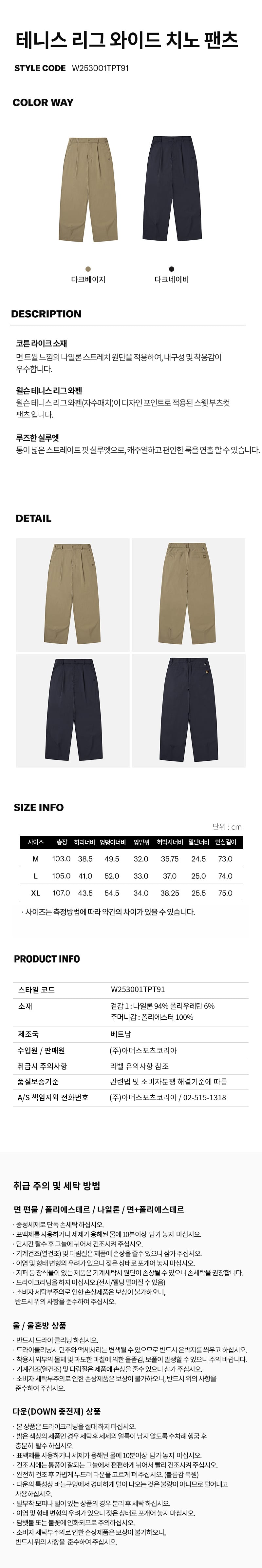 테니스 리그 와이드 치노 팬츠
