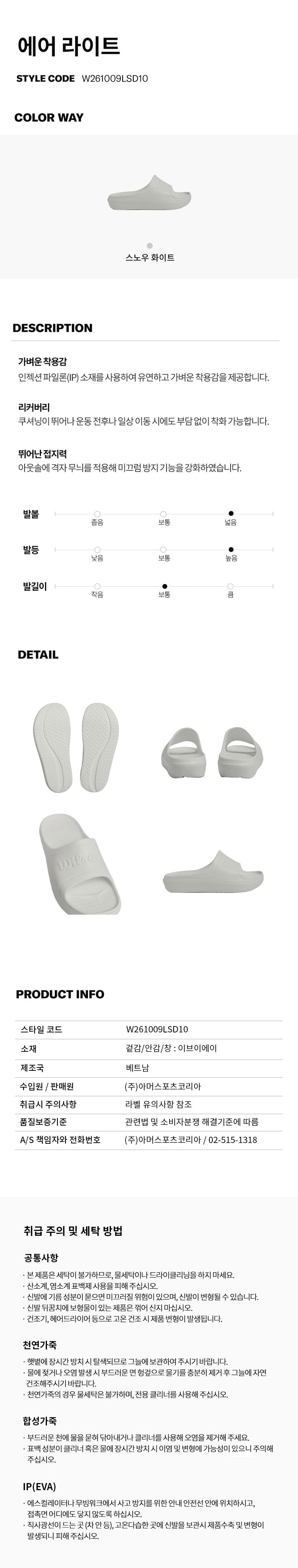 - 겉감 : 이브이에이 / 안감 : 이브이에이 / 창 : 이브이에이