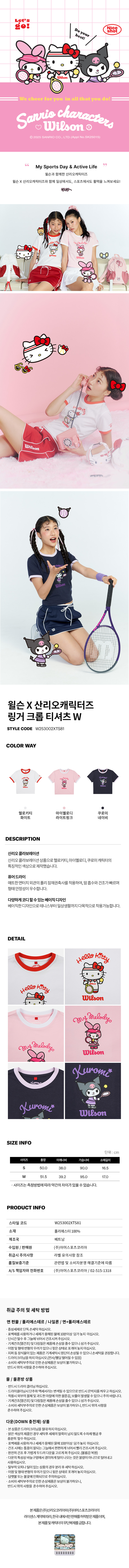 [윌슨X산리오캐릭터즈] 링거 크롭 티셔츠 W 마이멜로디